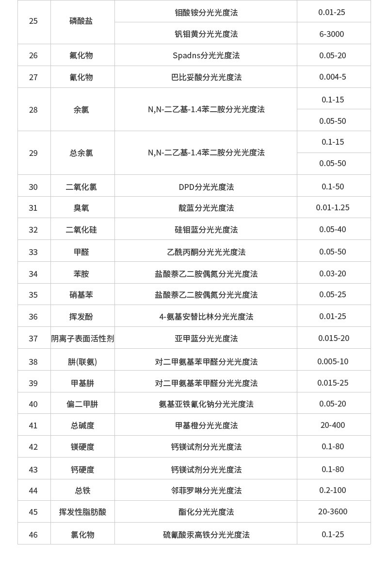 所有檢測項目依據(jù)國家行業(yè)標準:COD-《HJ/T399-2007》、氨氮-《HJ535-2009》、 總磷-《GB11893-89》